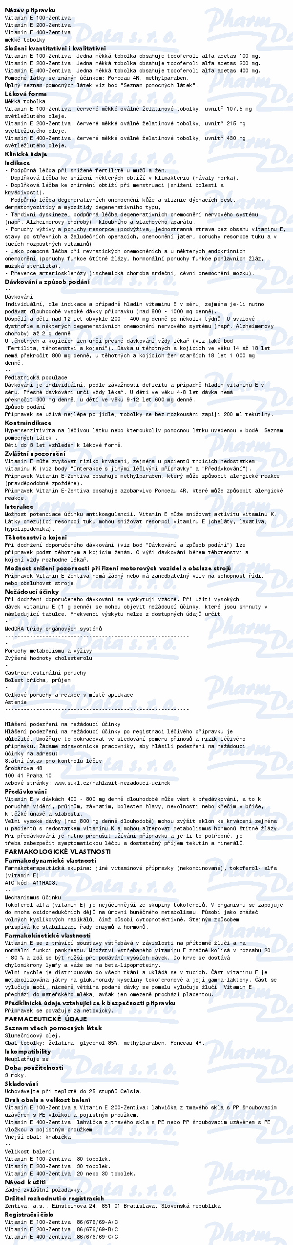 Vitamín E má významnou úlohu v organismu. Zabraňuje vzniku toxických oxidačních produktů a vzniku volných kyslíkových radikálů, které působí škodlivě na organizmus. Čtěte pozorně příbalový leták.