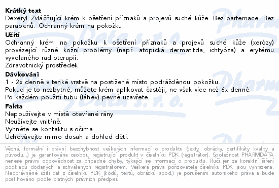 Dexeryl Zvláčňující krém k ošetření příznaků a projevů suché kůže. Bez parfemace. Bez parabenů. Ochranný krém na pokožku.