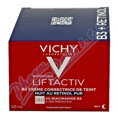VICHY LIFTACTIV B3 Noční tónovací krém s čistým retinolem pro obnovu buněk na hyperpigmentované pleti. VÝZKUM EXPOZOMU: Nadprodukce melaninu je vyvolána expozicí agresivním vlivům během dne (UV záření, znečištění).