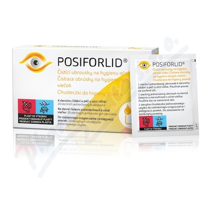 POSIFORLID čistící ubrousky na hygienu očních víček jsou zvlhčené, sterilní, jednorázové ubrousky vhodné k dennímu čištění a péči o citlivá oční víčka.